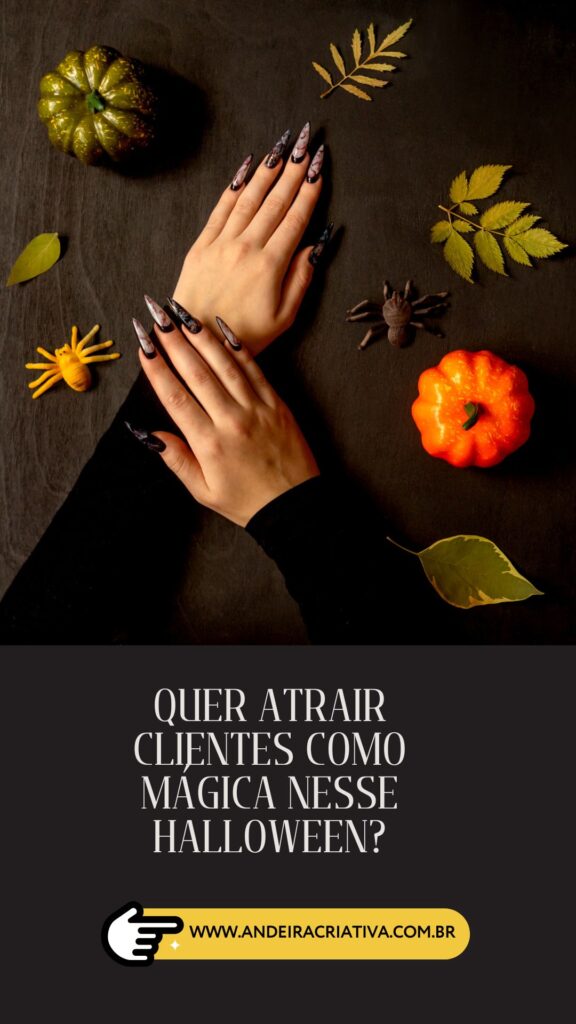 Aqui estão duas ideias de promoções criativas para o seu negócio de nail design no Dia das Bruxas: